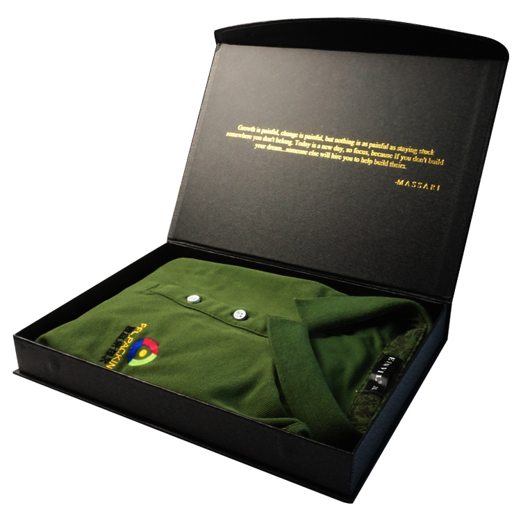 Nos boîtes de t-shirts noirs magnétiques de luxe combinent un design élégant avec une fonctionnalité supérieure, offrant un emballage haut de gamme pour les vêtements haut de gamme.